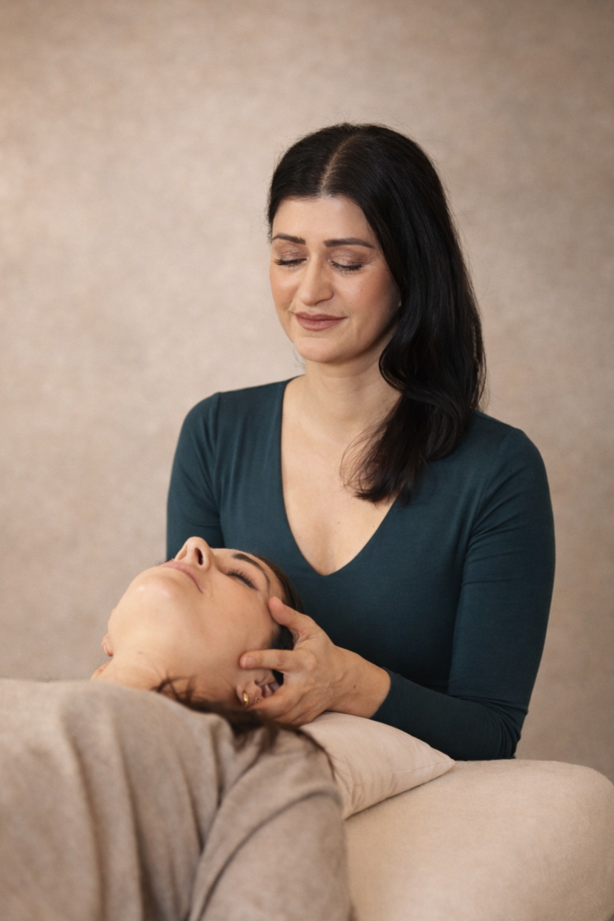 Craniosacral Therapie unterstützt Körper und Nervensystem dabei, Stress, Schmerzen und Erschöpfung zu regulieren und zu innerer Balance zurückzufinden. Die Behandlung ist ruhig, präzise und folgt dem Tempo des Körpers.
